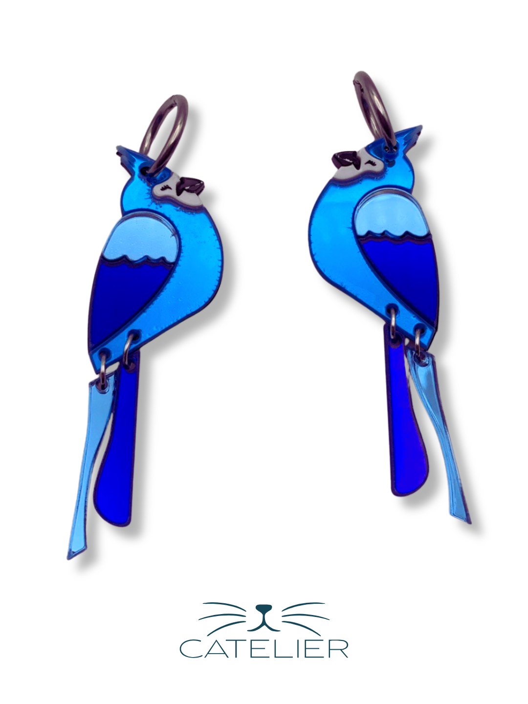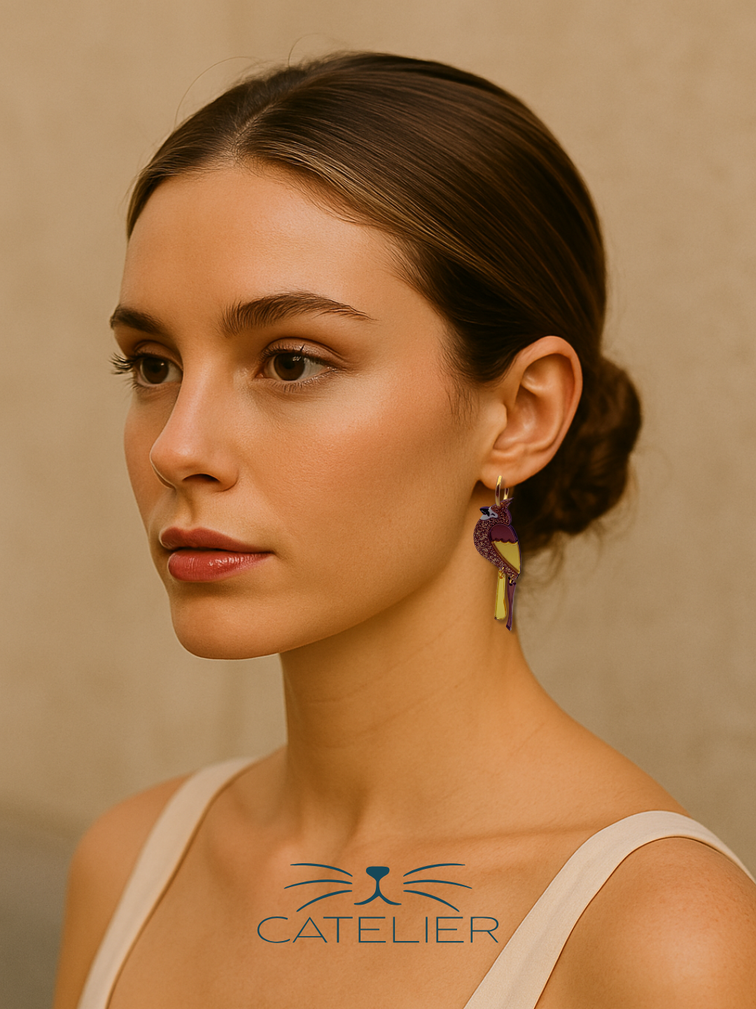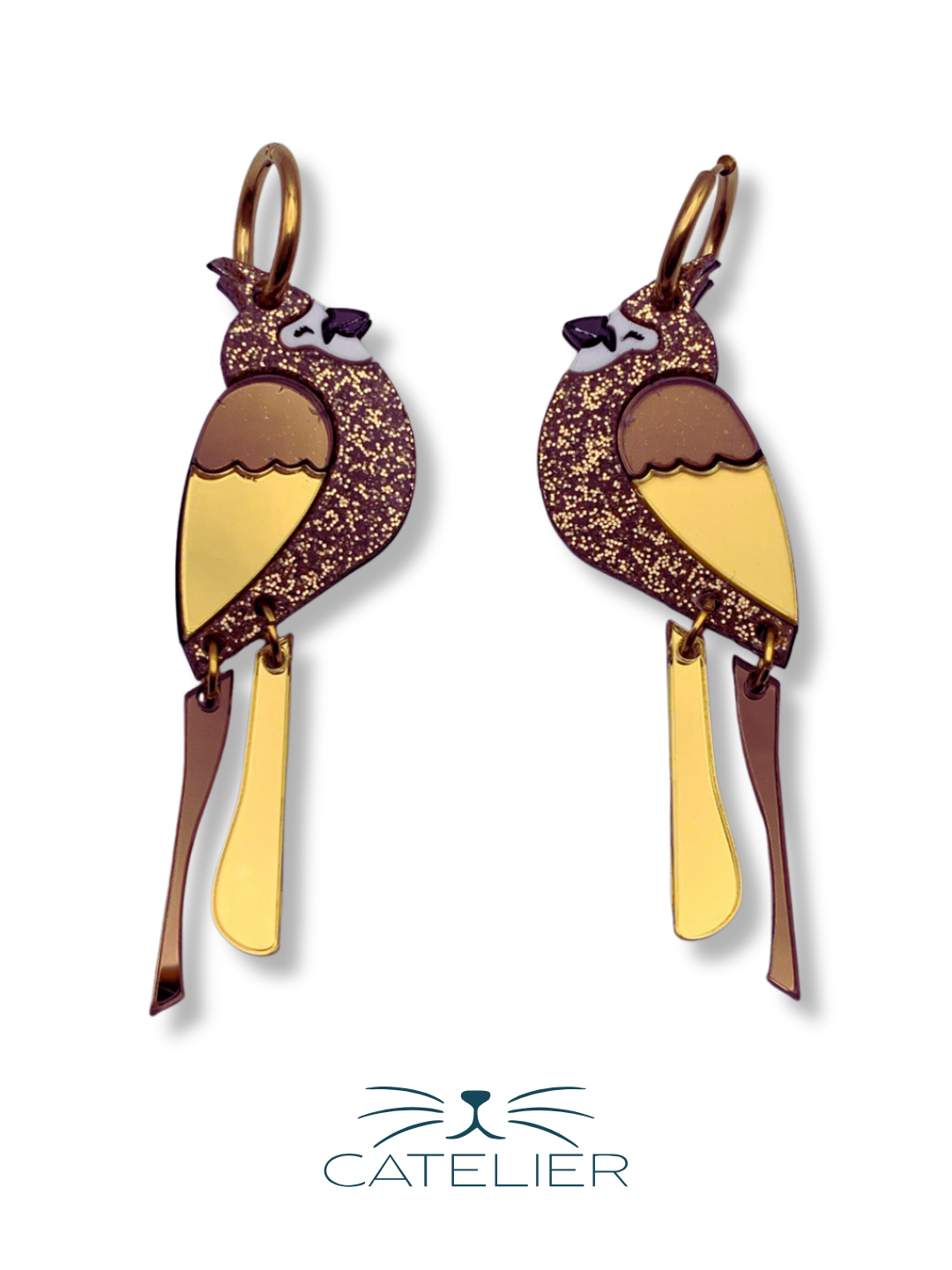 Inspirados en la ternura y viveza del agaporni, estos pendientes están fabricados en metacrilato efecto espejo de alta calidad y cortados con precisión para recrear la silueta característica de este pájaro exótico.