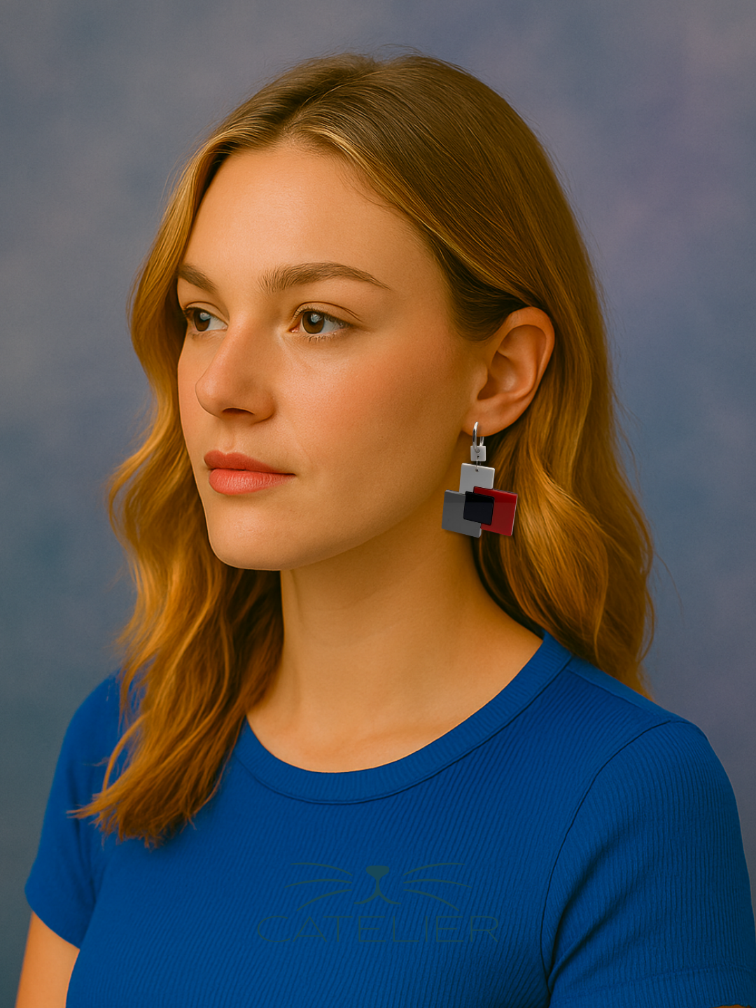 Los pendientes Bauhaus combinan diseño y arte en una pieza inspirada en la geometría y los contrastes del movimiento modernista. Están elaborados en metacrilato de alta calidad, con formas cuadradas y superpuestas en tonos rojo, gris, blanco y negro, creando un efecto visual elegante y contemporáneo.