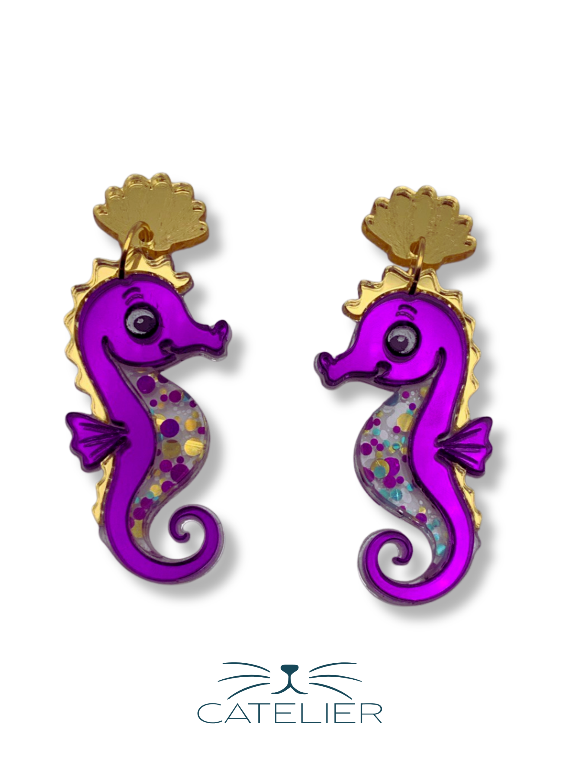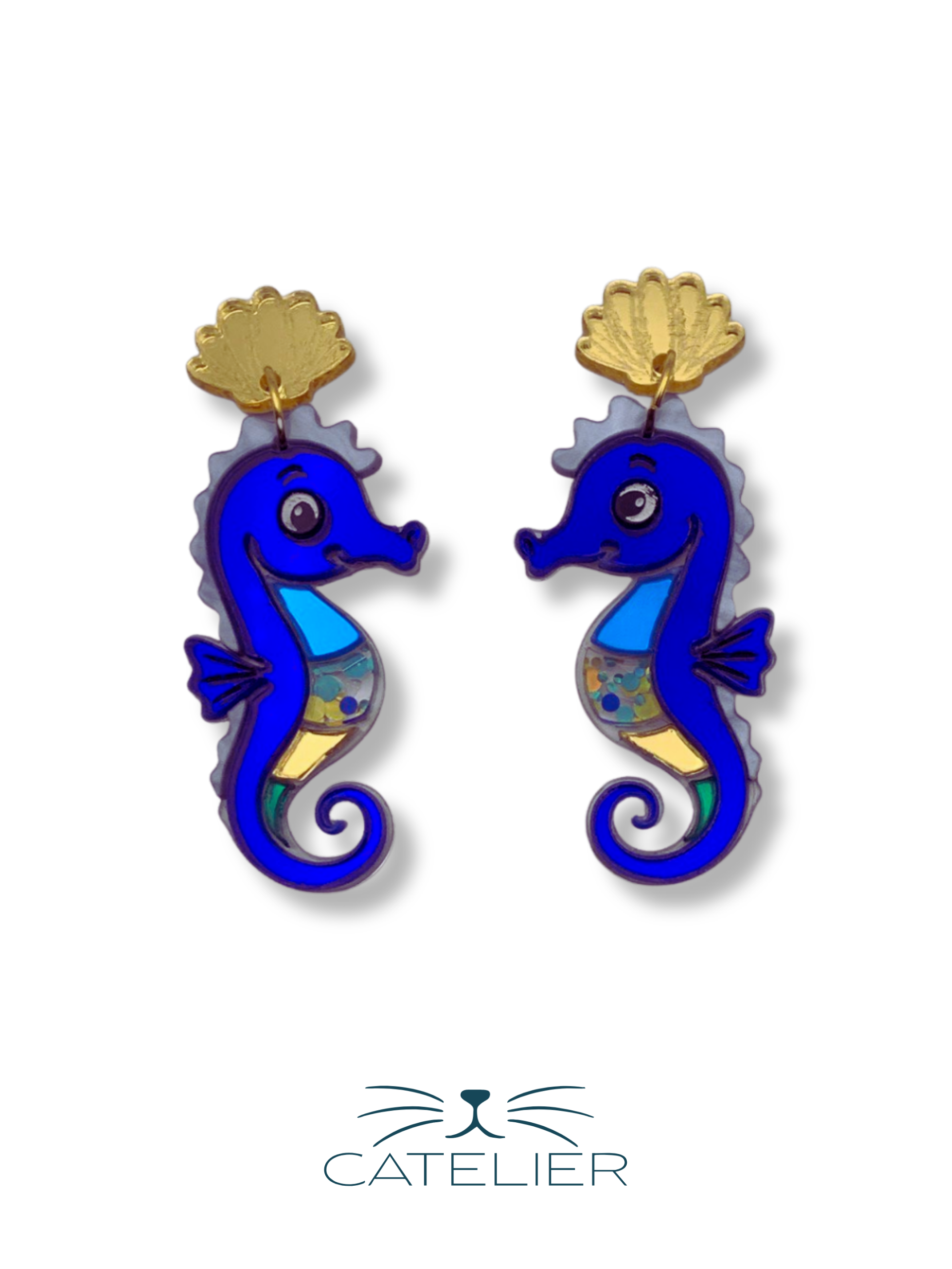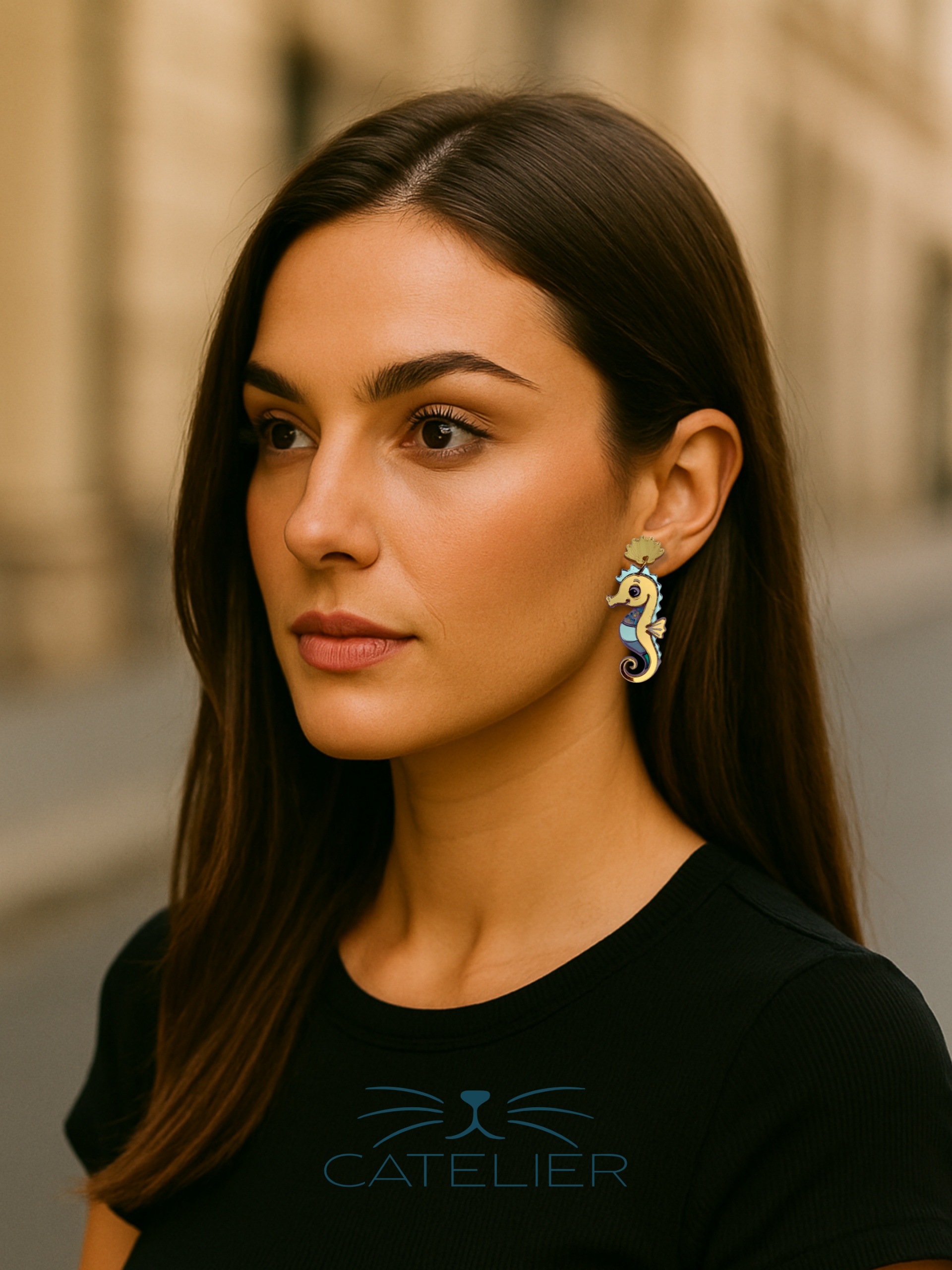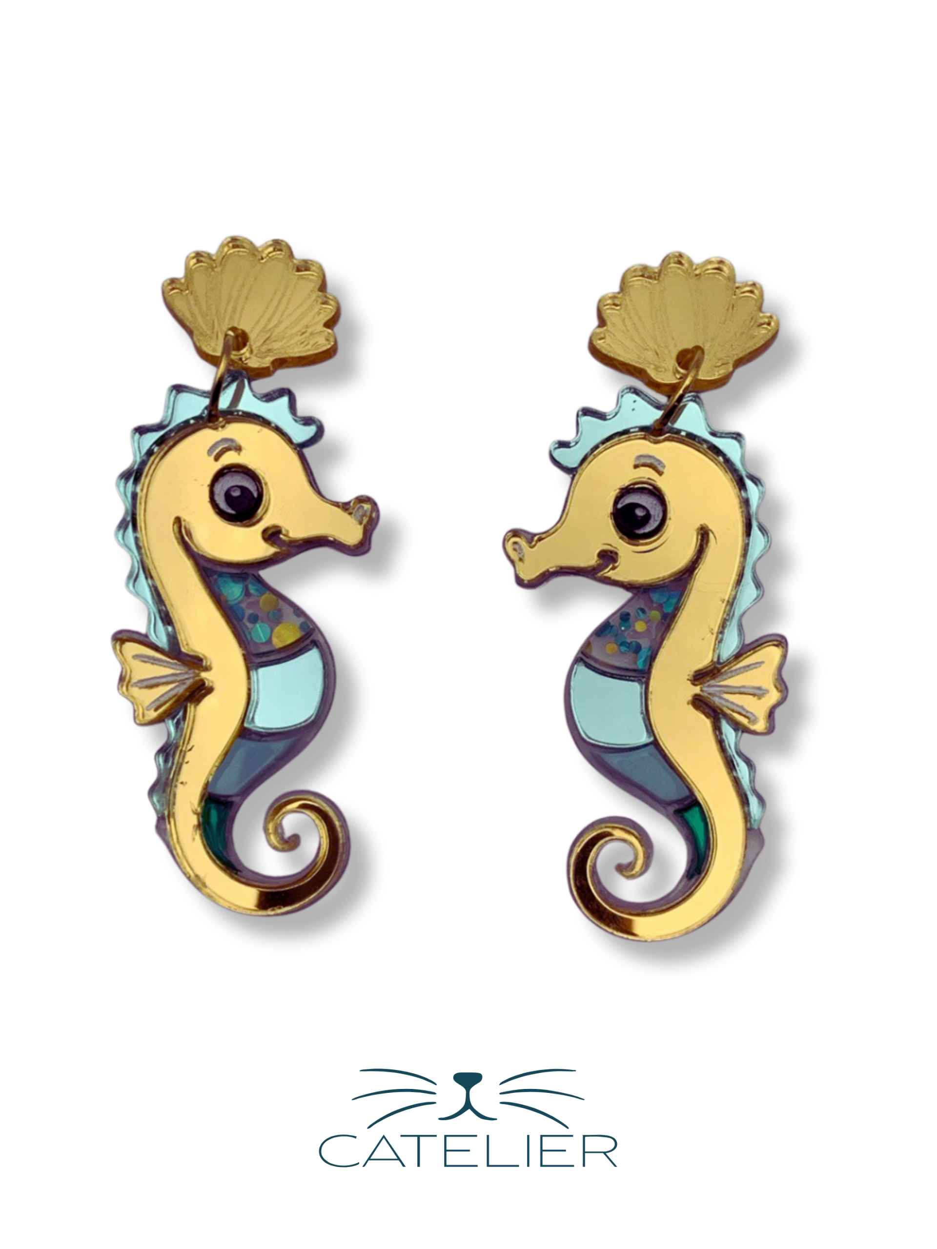 El pendiente Caballito de Mar está inspirado en una de las criaturas más fascinantes del océano. Fabricado a mano en metacrilato, este diseño combina detalles grabados con un acabado brillante que captura la luz y realza sus formas curvas y delicadas.
