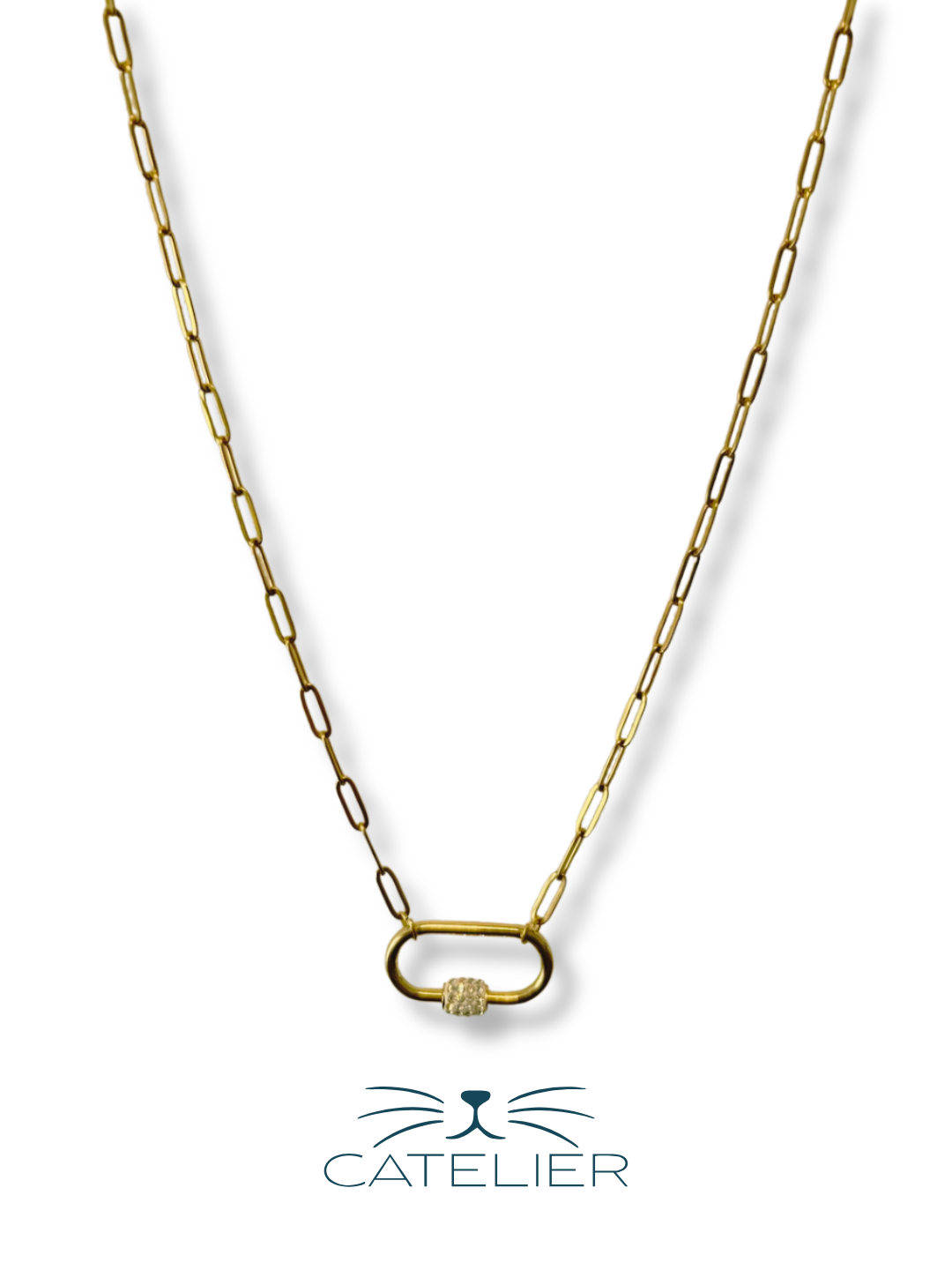 Está pensada para personalizarla a tu gusto: puedes llevarla sola como collar minimal o añadirle tus charms Catelier, colocándolos fácilmente en el cierre o a lo largo de la cadena. Gracias a su estructura, también puede adaptarse como pulsera, convirtiéndose en una opción muy práctica y combinable.