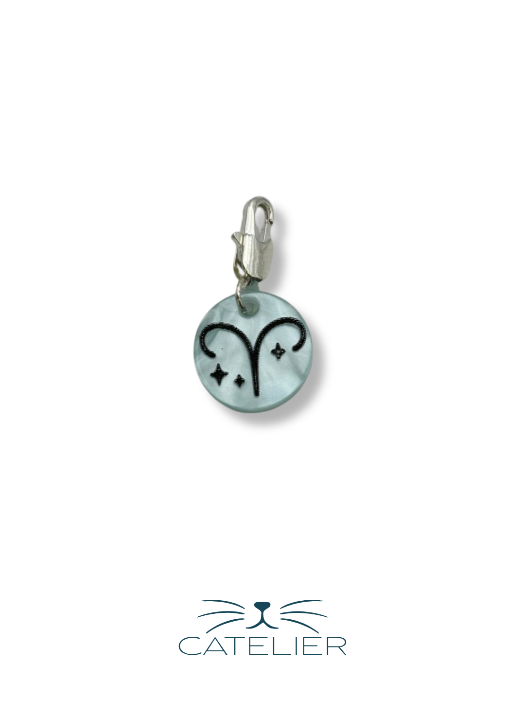 El charm Aries representa la fuerza, el liderazgo y la pasión de este signo de fuego. Con un diseño redondo de 1,5 cm, está elaborado en metacrilato de alta calidad y cuenta con el símbolo de Aries grabado en su superficie.