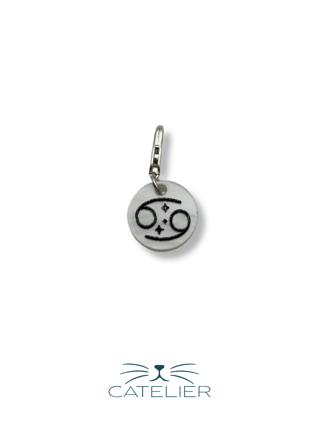 El charm Cáncer simboliza la sensibilidad, la protección y el hogar. Su diseño redondo de 1,5 cm en metacrilato incorpora el símbolo de Cáncer grabado, con un acabado elegante y sencillo.