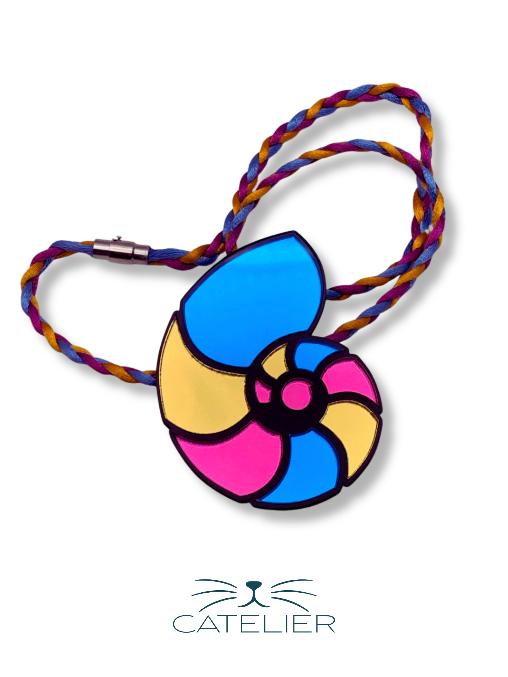 El Collar Caracola es una joya con espíritu de verano y aire mediterráneo. Su colgante en forma de caracola está fabricado en metacrilato efecto espejo, y se presenta en varios colores: azul eléctrico, rosa vibrante, dorado elegante o negro profundo. Cada pieza está cortada y montada a mano en España, cuidando cada detalle.