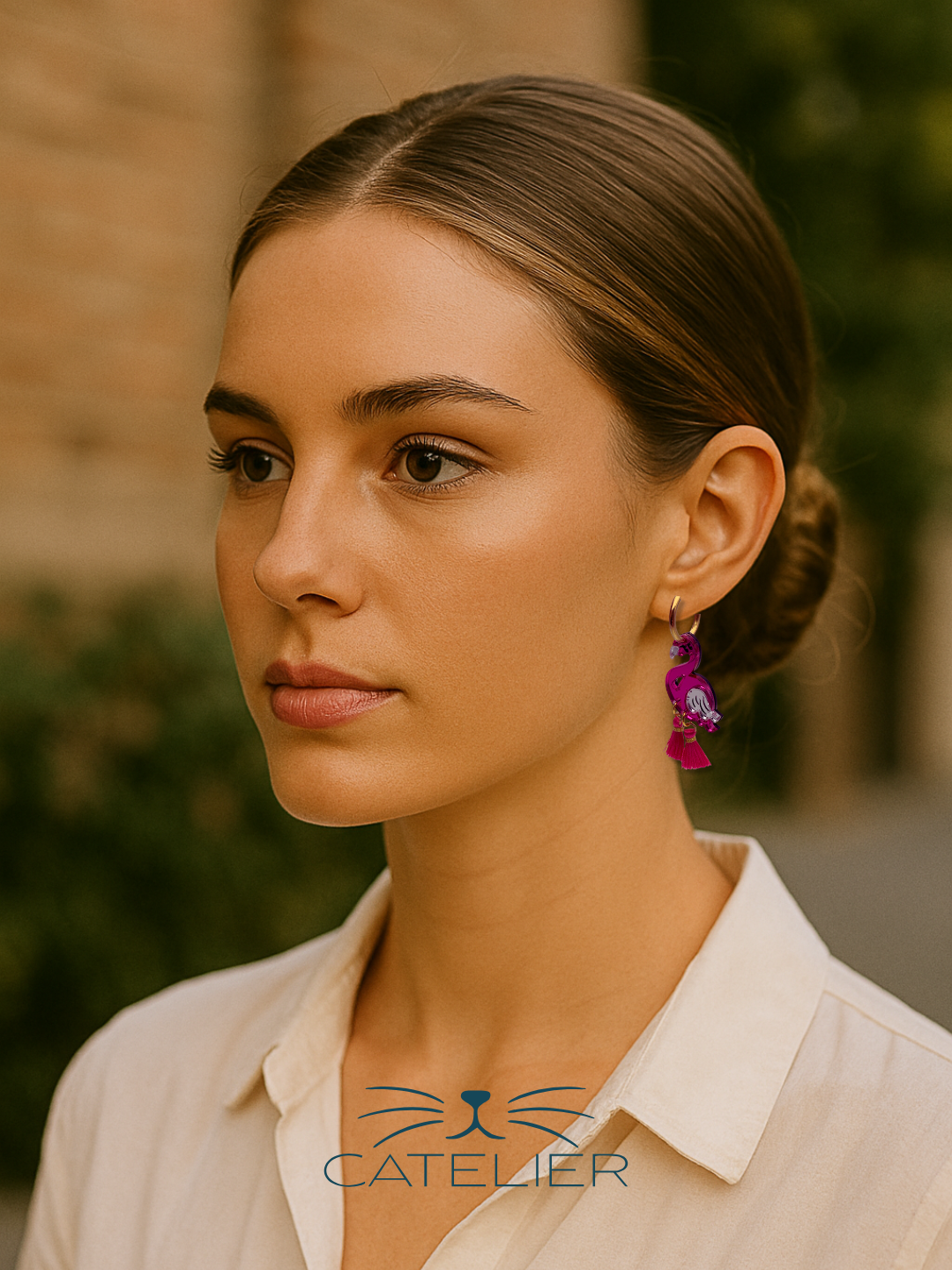 Los Pendientes Flamenco están llenos de pequeños detalles que los hacen irresistibles. Fabricados en metacrilato de alta calidad, muestran el cuerpo del flamenco en dos versiones: