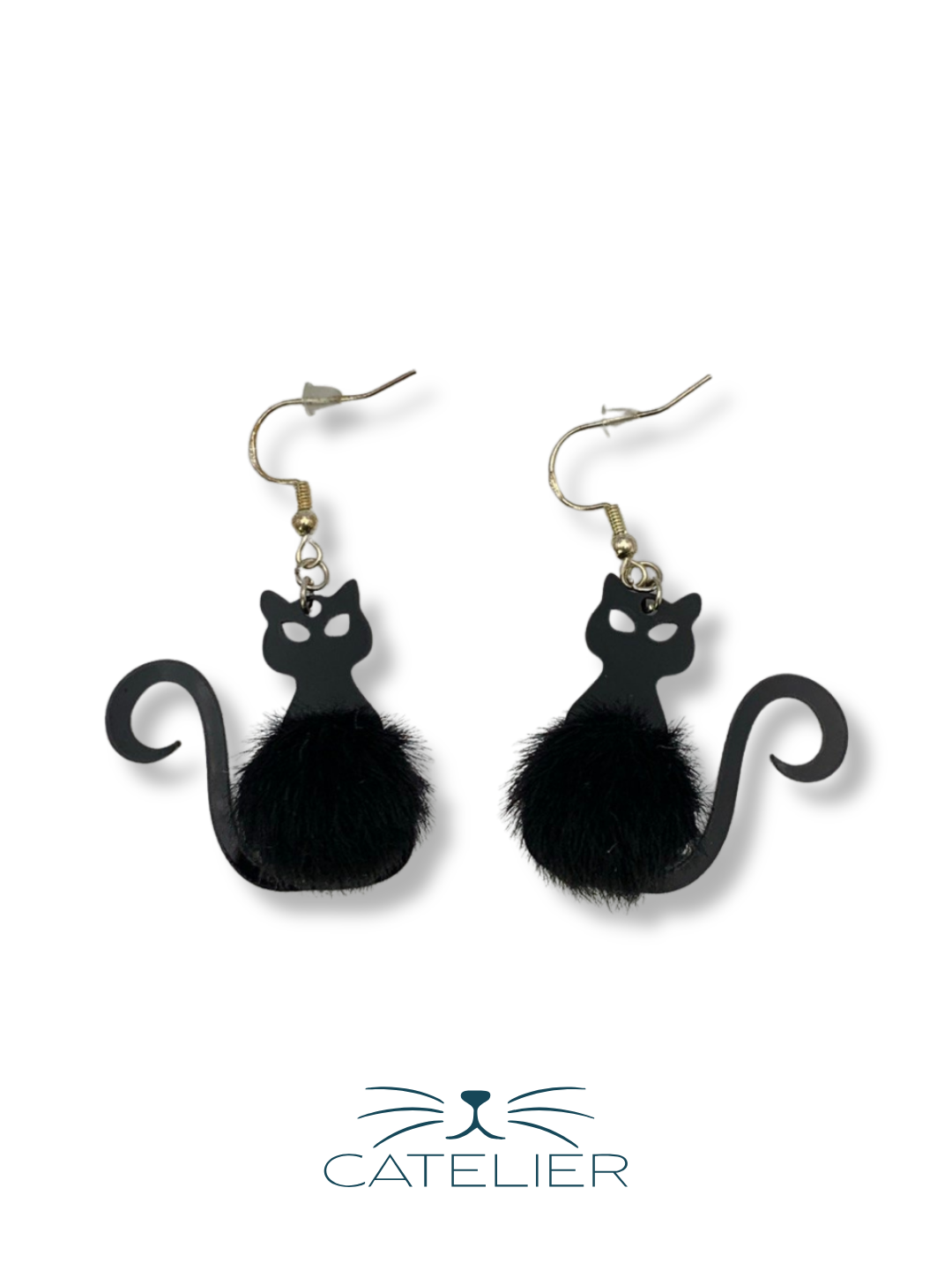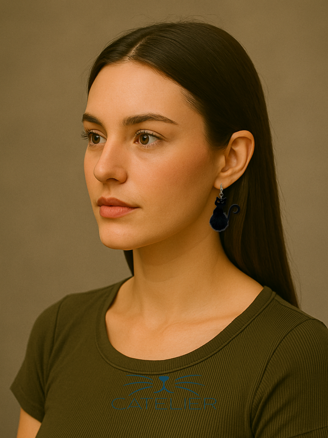 Los pendientes Gato Encantado combinan la silueta elegante de un gato negro en metacrilato mate con un original detalle de pompón esponjoso, que da textura y un aire único al diseño. La cola enroscada y las orejitas puntiagudas refuerzan la estética mágica y misteriosa, ideal para acompañar looks divertidos o con un toque esotérico.