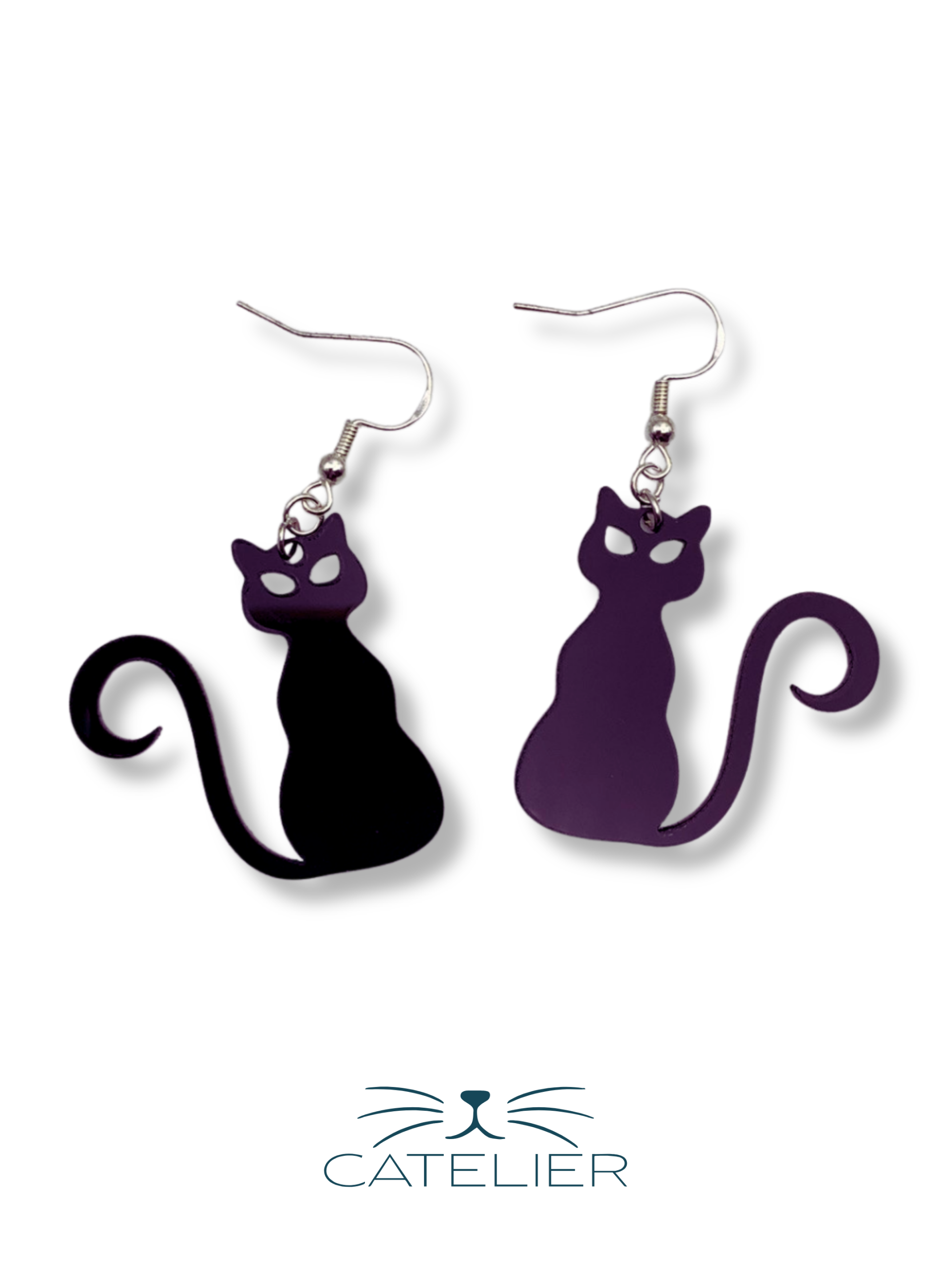 Pendientes con silueta de gato en metacrilato negro. Elegantes, enigmáticos y con mucho estilo para Halloween o todo el año.