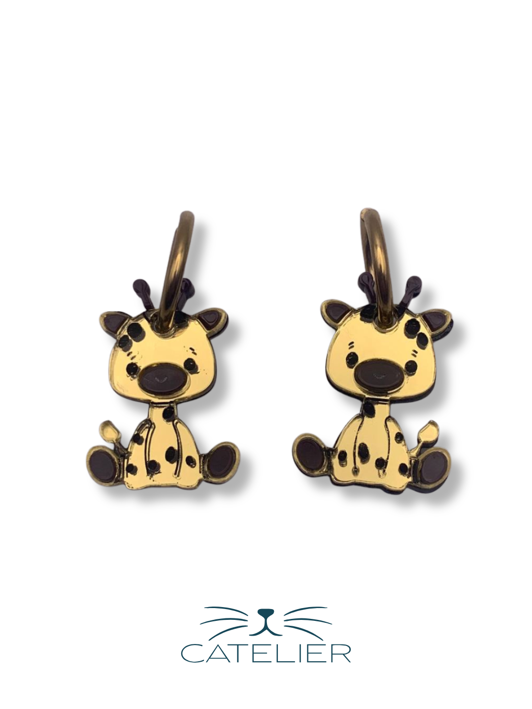 El pendiente Jirafa está realizado en metacrilato espejo amarillo y marrón, mostrando con detalle sus característicos tonos y manchas. Su diseño encantador lo convierte en un accesorio único, alegre y muy fácil de combinar.