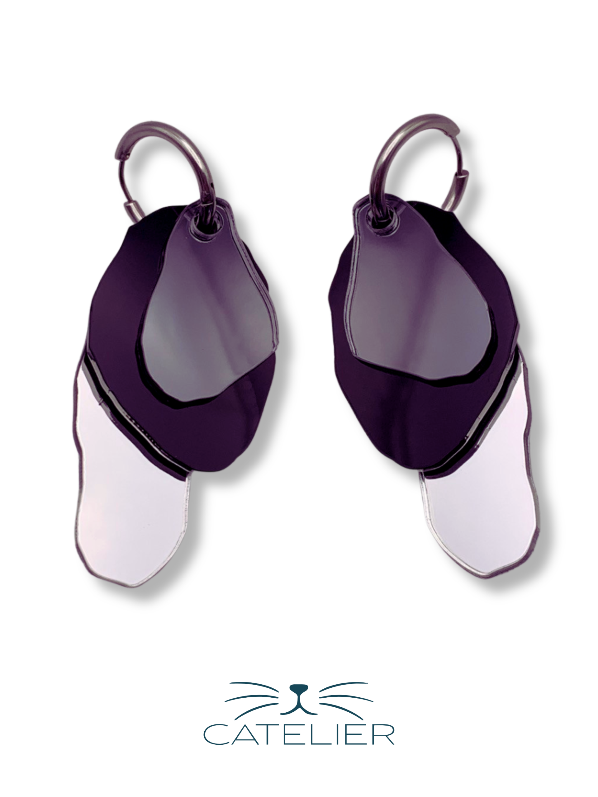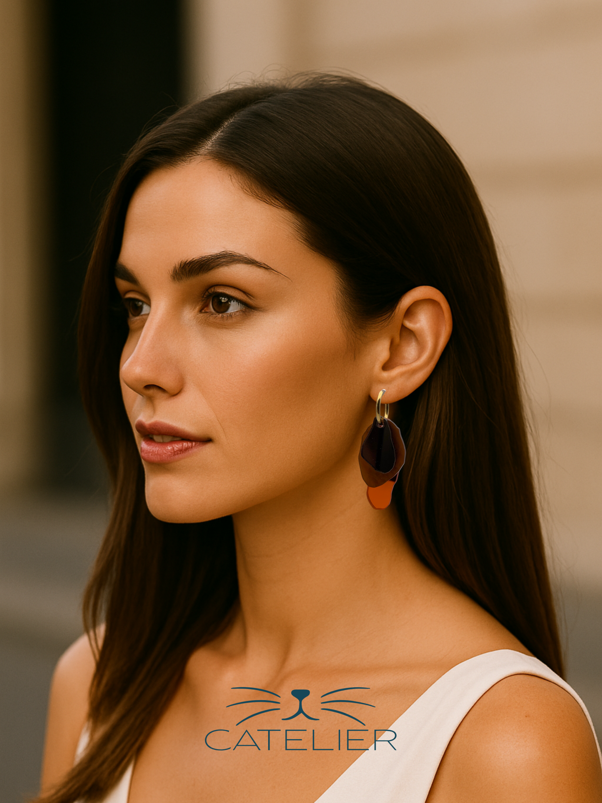 Cada pendiente combina efectos espejo brillantes, acabados nacarados y colores lisos, creando contraste y textura en una paleta equilibrada. Ligeros y hechos a mano en España, son ideales para quienes aprecian lo natural, lo artístico y lo distinto.