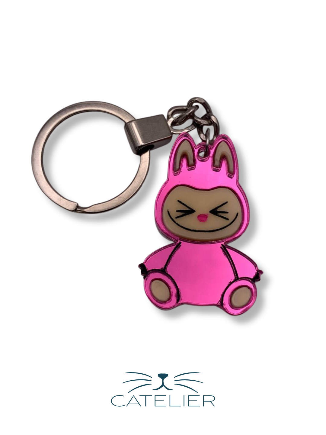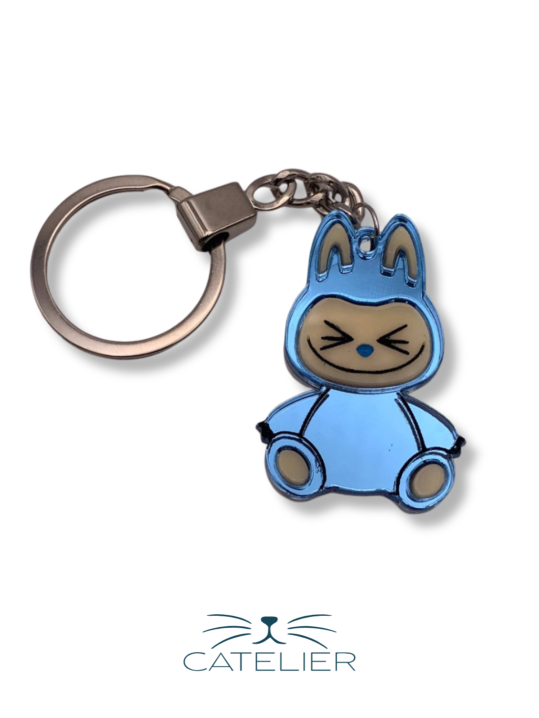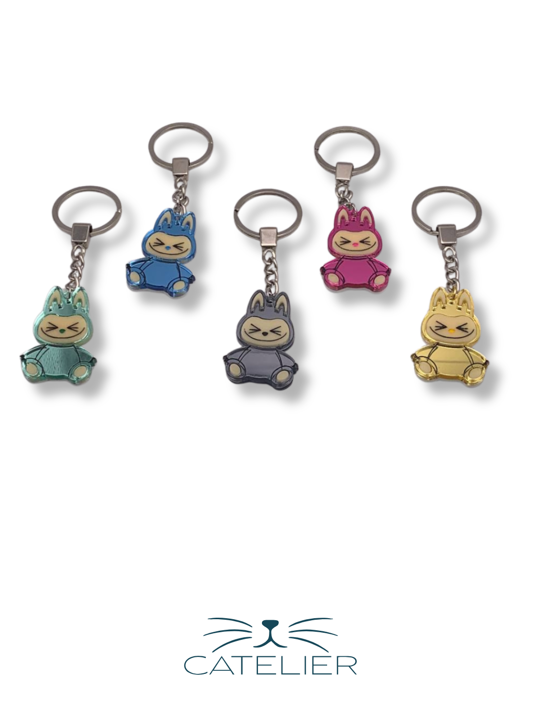 El llavero Labubu es el accesorio perfecto para llevar a tu personaje favorito siempre contigo. Realizado en metacrilato espejo de alta calidad, con un diseño divertido y lleno de personalidad, está disponible en cinco colores vibrantes: rosa, azul, verde, amarillo y gris, para que elijas el que mejor se adapte a tu estilo.