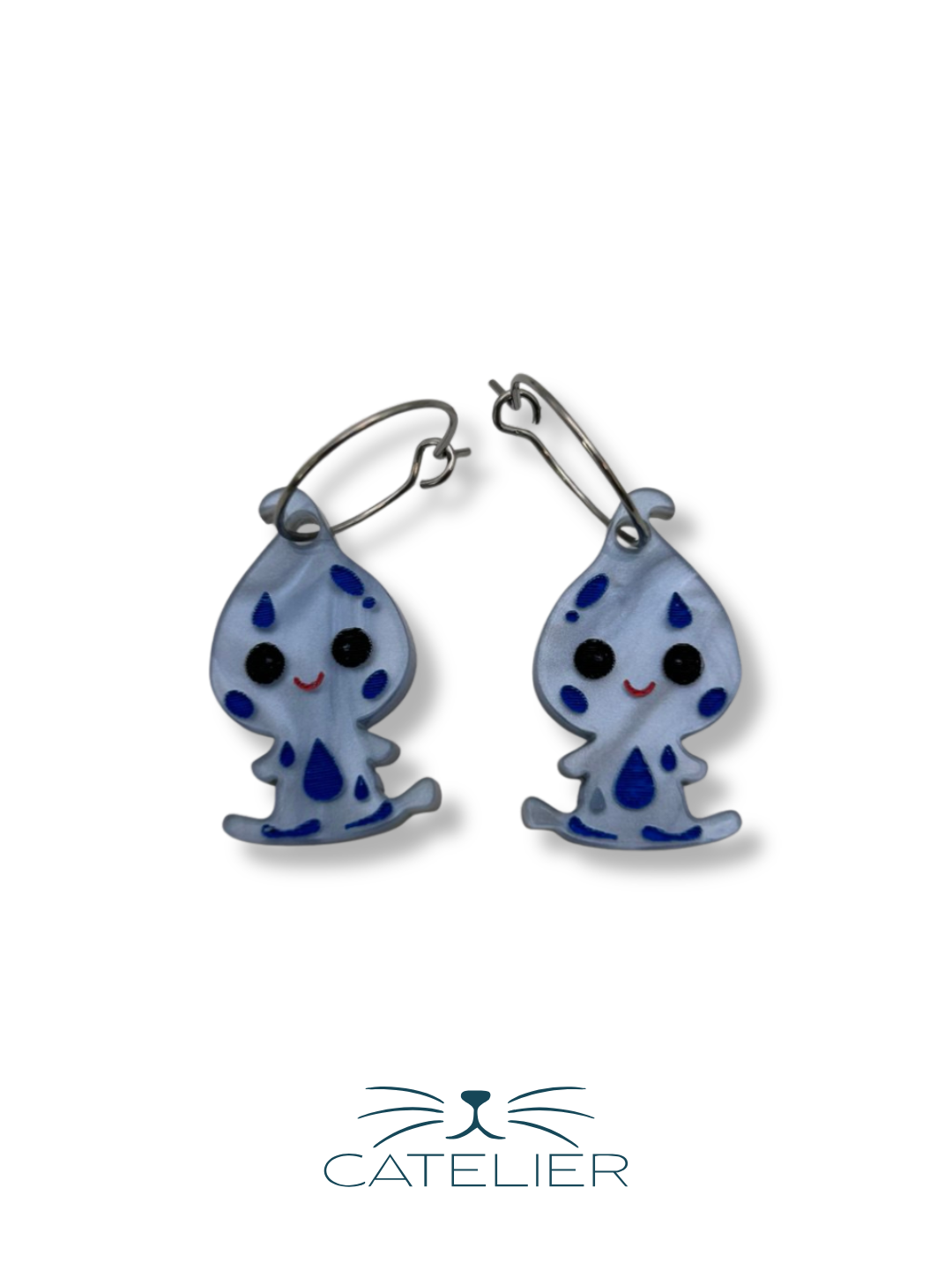 Un mini pendiente de muñequito elemento agua en acabado nacarado, con arito fino. Suave, ligero y perfecto para peques.