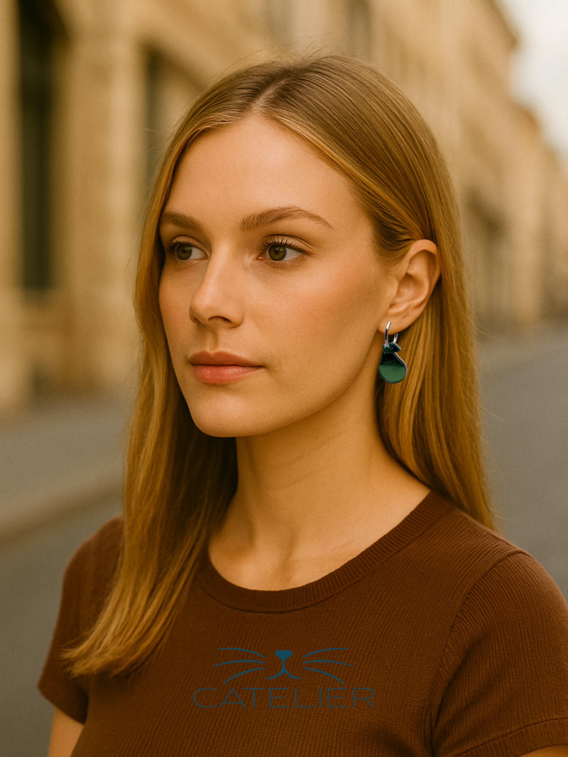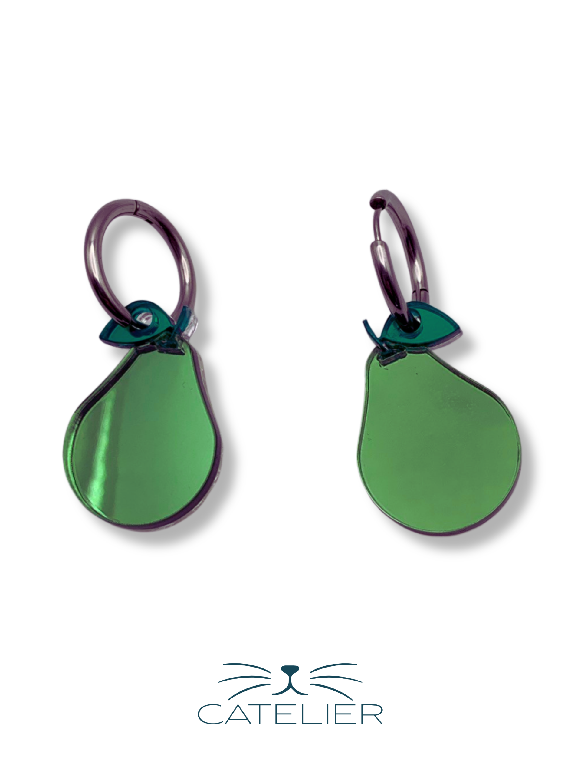 El pendiente Pera Brillante está diseñado con una silueta suave y orgánica que imita la forma de esta fruta tan querida. Fabricado en metacrilato amarillo espejo, cuenta con una hojita verde espejo y un pequeño tallo cobre espejo, que completan este diseño lleno de carácter y luz.