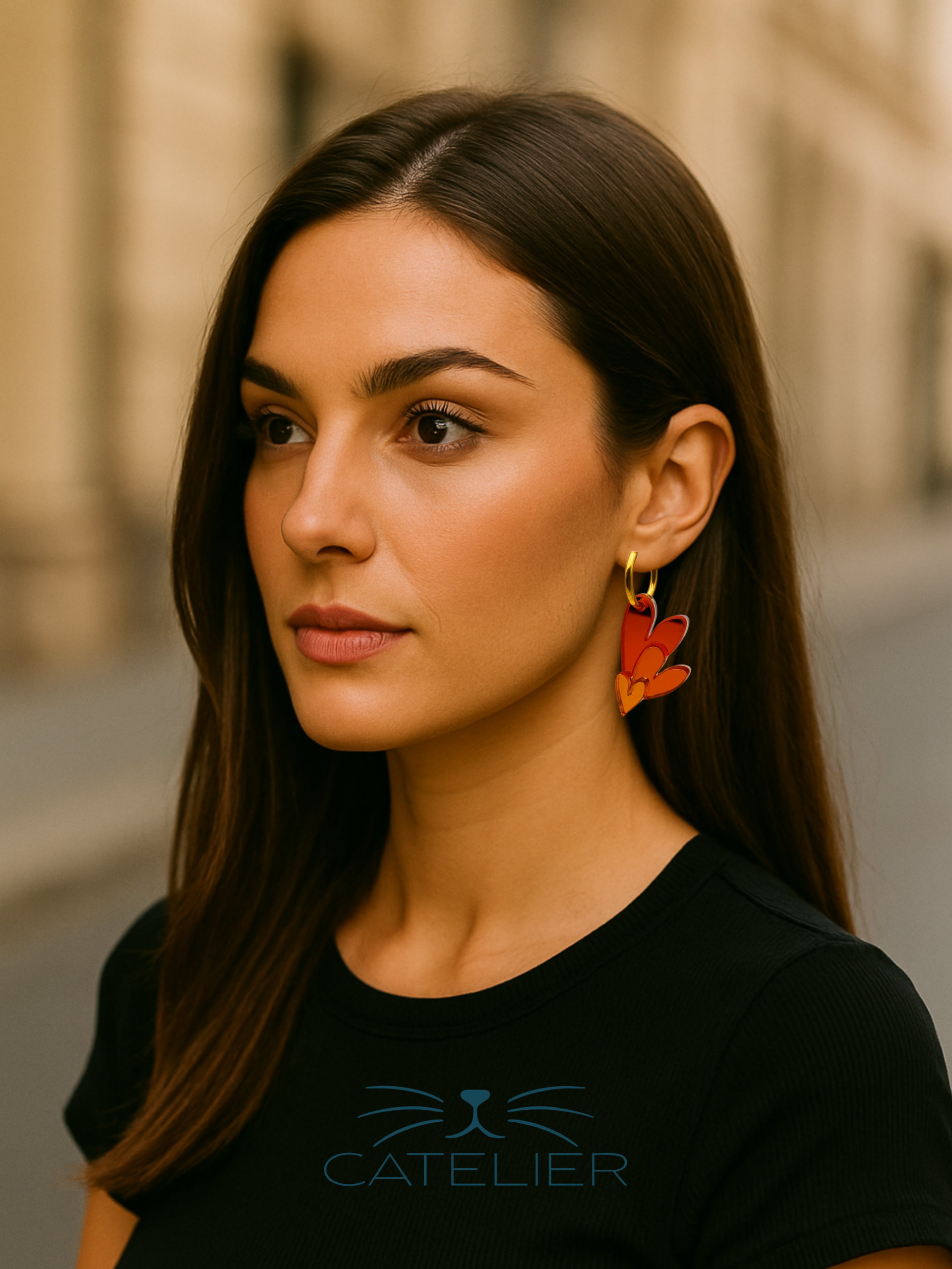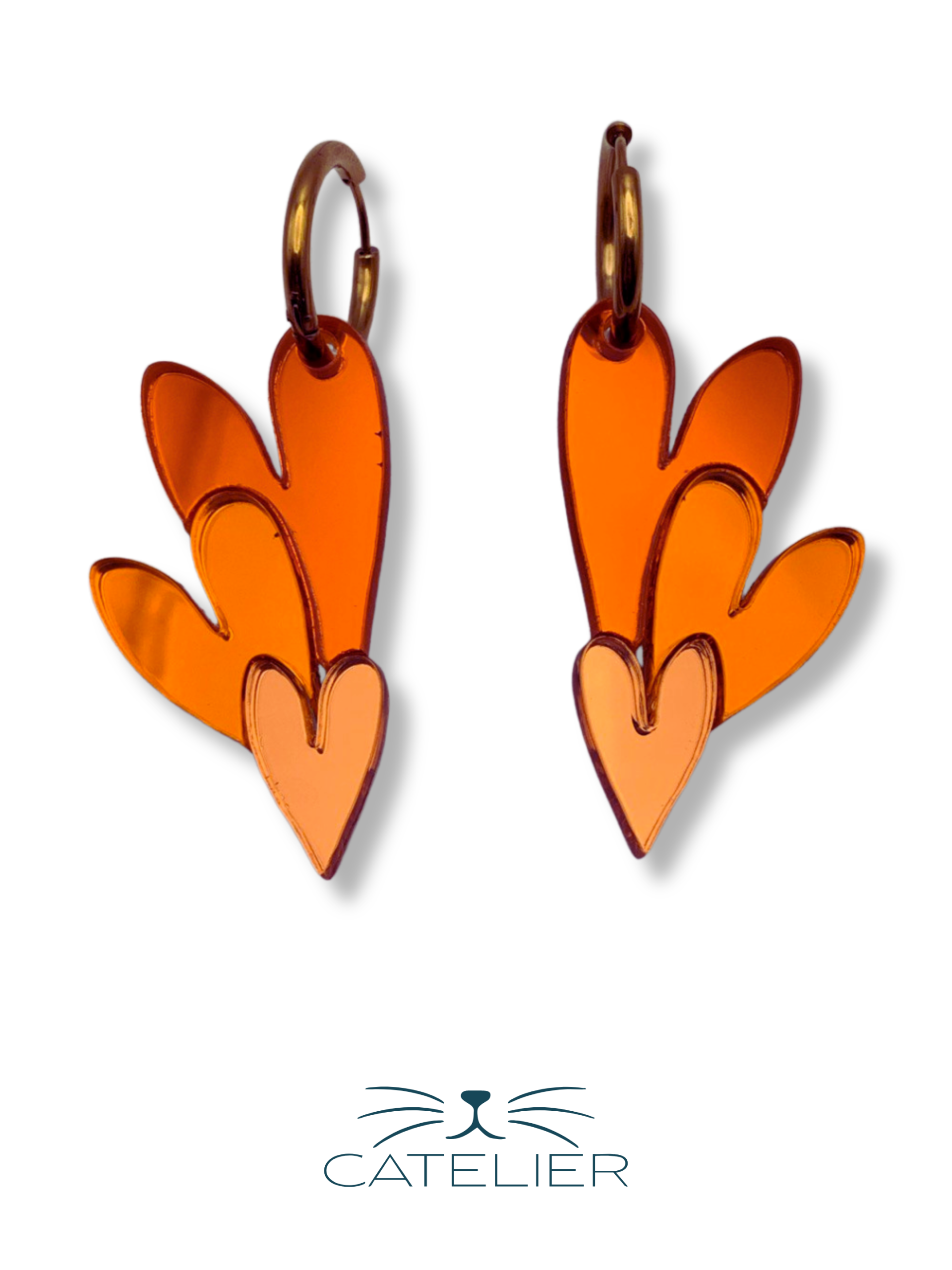 Los Pendientes Triple Corazón son una declaración de amor al color y al diseño. Cada pendiente está formado por tres corazones de diferentes tamaños, montados uno sobre otro para crear profundidad y movimiento visual.