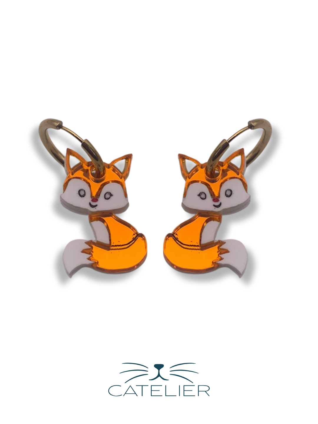 El pendiente Zorro está fabricado en metacrilato espejo naranja y blanco, resaltando las formas características de este animal astuto y encantador. Su acabado brillante aporta un toque sofisticado y llamativo.